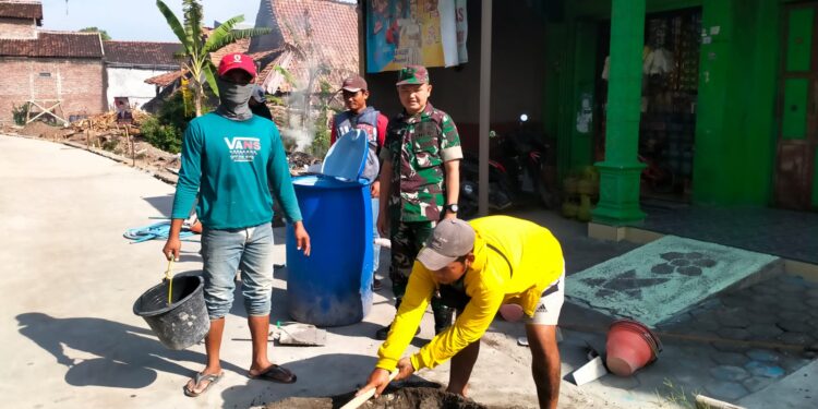 Demak – bedanews.com – Babinsa Koramil 12/Mranggen, Kodim 0716/Demak, Serda Ahmad Muslih bersama Masyarakat melaksanakan Karya Bakti pembuatan talud sepanjang 200 meter di Dukuh Ploso Rt 08 Rw 03, Desa Karangsono, Kecamatan Mranggen, Kabupaten Demak, Jum’at (16/09/2022).