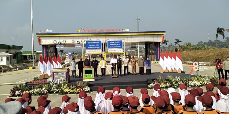 SUKABUMI – BEDAnews.com || Presiden Joko Widodo (Jokowi) didampingi Menteri Pekerjaan Umum dan Perumahan Rakyat (PUPR) Basuki Hadimuljono, Menteri BUMN Erick Thohir, Gubernur Jawa Barat Ridwan Kamil dan Bupati Sukabumi Marwan Hamami meresmikan Jalan Tol Ciawi-Sukabumi Seksi 2 Cigombong-Cibadak di Sukabumi, Jumat (4/8/2023)