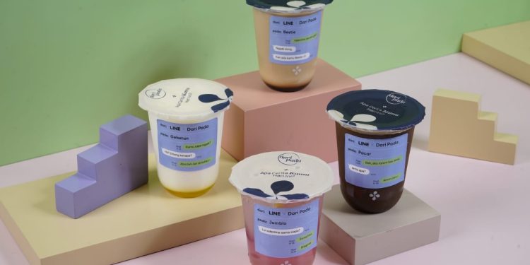 Dengan memiliki semangat yang sama, yaitu sebagai media penyampai pesan, keduanya menghadirkan desain bubble chat khas LINE di kemasan minuman Dari Pada by Hangry sebagai pelengkap momen saat menikmati segelas minuman favorit.