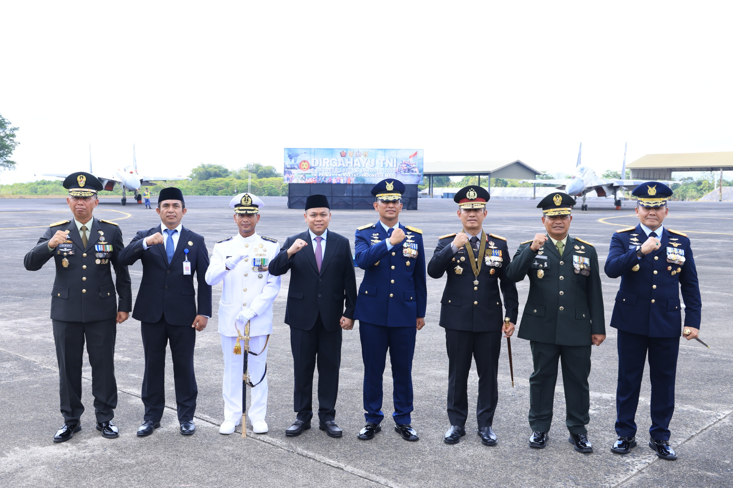 Makassar – Komandan Lanud Sultan Hasanuddin Marsekal Pertama TNI Arifaini Nur Dwiyanto, M.Han didampingi Ketua PIA AG Cab.7/D.II Lanud Sultan Hasanuddin Ny. Betty Arifaini Nur Dwiyanto, menghadiri Upacara Peringatan HUT Ke-80 Tentara Nasional Indonesia di Apron Base Ops Lanud Sultan Hasanuddin, Makassar, Minggu (5/10/2025).