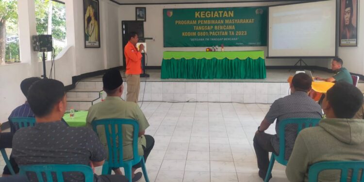 Pacitan – bedanews.com – Sebagai upaya mengurangi dan memperkecil resiko dampak bencana alam, Kodim 0801/Pacitan bekerjasama dengan BPBD Kab. Pacitan mengadakan sosialisasi tentang mitigasi, yang berlangsung di Aula Kopral Sigit Jl. Letjen Suprapto No. 42 Pacitan, Jum’at (27/10/2023).