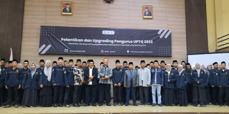 Pelantikan dan Upgrading Pengurus UPTQ 2023 bertajuk “Melahirkan generasi UPTQ yang berkualitas mewujudkan organisasi yang berintegritas” ini dihadiri oleh Pembina UPTQ, Prof. Dr. Fauzan Ali Rasyid, MSi, Dr. KH. Asep Musthofa Kamal, M.Ag., Koordinator Bagian Kemahasiswaan dan Alumni, Wawan Gunawan