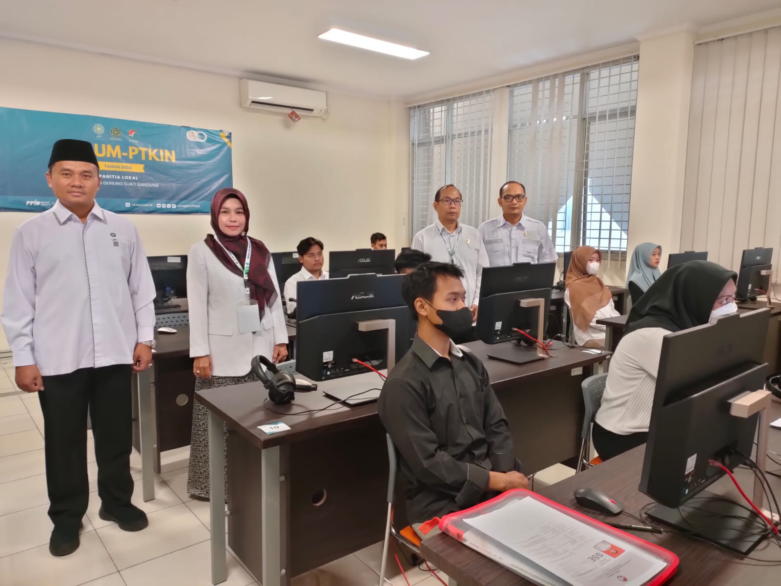 Demikian disampaikan, Wakil Rektor I, Dr.Dadan Rusmana, didampingi Kepala Pusat Penerimaan Mahasiswa Baru (PMB), Dr. M. Erihadiana, Kepala Pusat Teknologi Informasi dan Pangkalan Data (PTIPD), Mohamad Irfan, Ph.D, saat memantau pelaksanaan SEE- UM-PTKIN 202, di Laboratorium Computer Based Test (CBT) Gedung Lecture Hall, UIN Sunan Gunung Djati Bandung dari tanggal 24-30 Juni 2024,