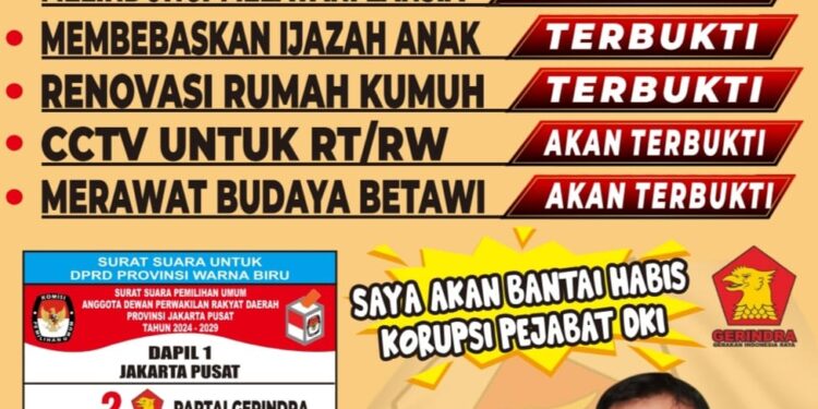 Jakarta – bedanews.com – Pemilu 2024 sudah makin dekat tinggal 36 hari lagi, sudah banyak sekali para elite politik melakukan menuver dengan janji-janji, untuk mendapat dukungan. Tapi tidak begitu bagi Caleg dari Partai Gerindra, Herbert Aritonang, sebagai Caleg DPRD DKI Jakarta nomor urut 11 Dapil Jakarta Pusat.