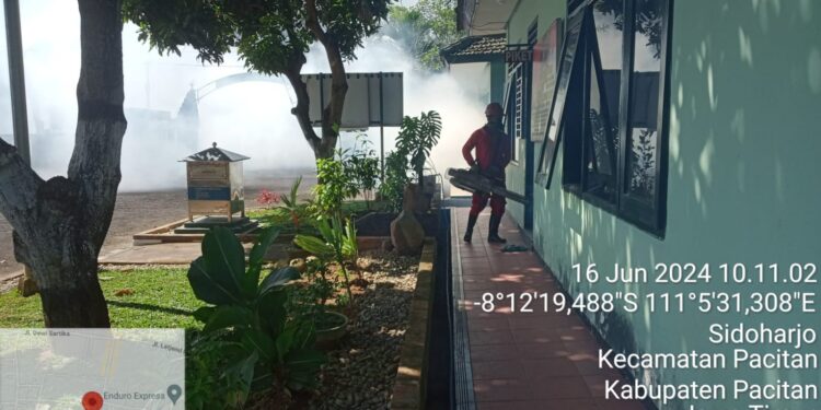 PACITAN || bedanews.com – Sebagai langkah antisipasi terhadap penyebaran penyakit demam berdarah, Kodim 0801/Pacitan bekerjasama dengan Dinas Kesehatan Kab. Pacitan melaksanakan pengasapan di lingkungan Asrama Jl. Letjen Suprapto No. 42 Pacitan, Minggu (16/06/2024).