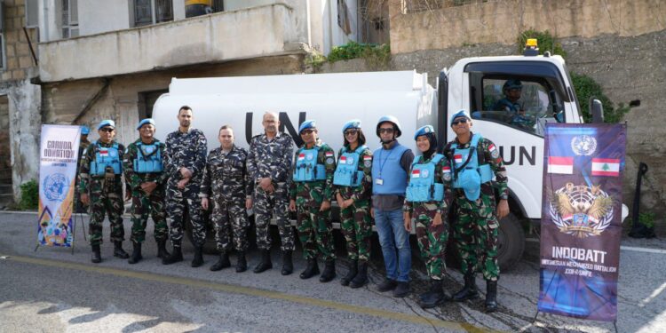 Lebanon – Satuan Tugas Yonmek TNI Konga XXIII-R/UNIFIL memberikan dukungan air bersih dengan menggunakan satu kendaraan tangki air kepada kantor ISF (Internal Security Forces) yang terletak di El Aadaisse Lebanon Selatan (14/03/2024).