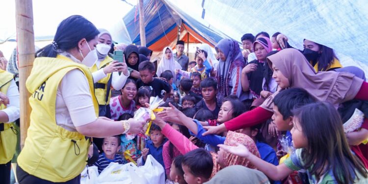 Cianjur – bedanews.com – Ketua Ikatan Isteri Partai Golkar (IIPG), Yanti Isfandiary Airlangga, Selasa (29/11/2022) bertandang ke sejumlah posko darurat pengungsi terdampak gempa Cianjur. Yanti yang juga membawa serta komunitas Warisan Budaya Indonesia sempat memimpin trauma healing bagi anak korban terdampak bencana di sana.