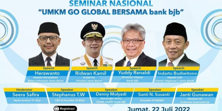 BANDUNG || — bank bjb terus mendorong UMKM agar bisnisnya semakin berkembang dan mendunia melalui Bincang Jumat Bisnis spesial episode ke-222 dengan tema “UMKM Go Global Bersama bank bjb” yang akan berlangsung hybrid pada 22 Juli 2022 pukul 13.30-16.00 WIB.
